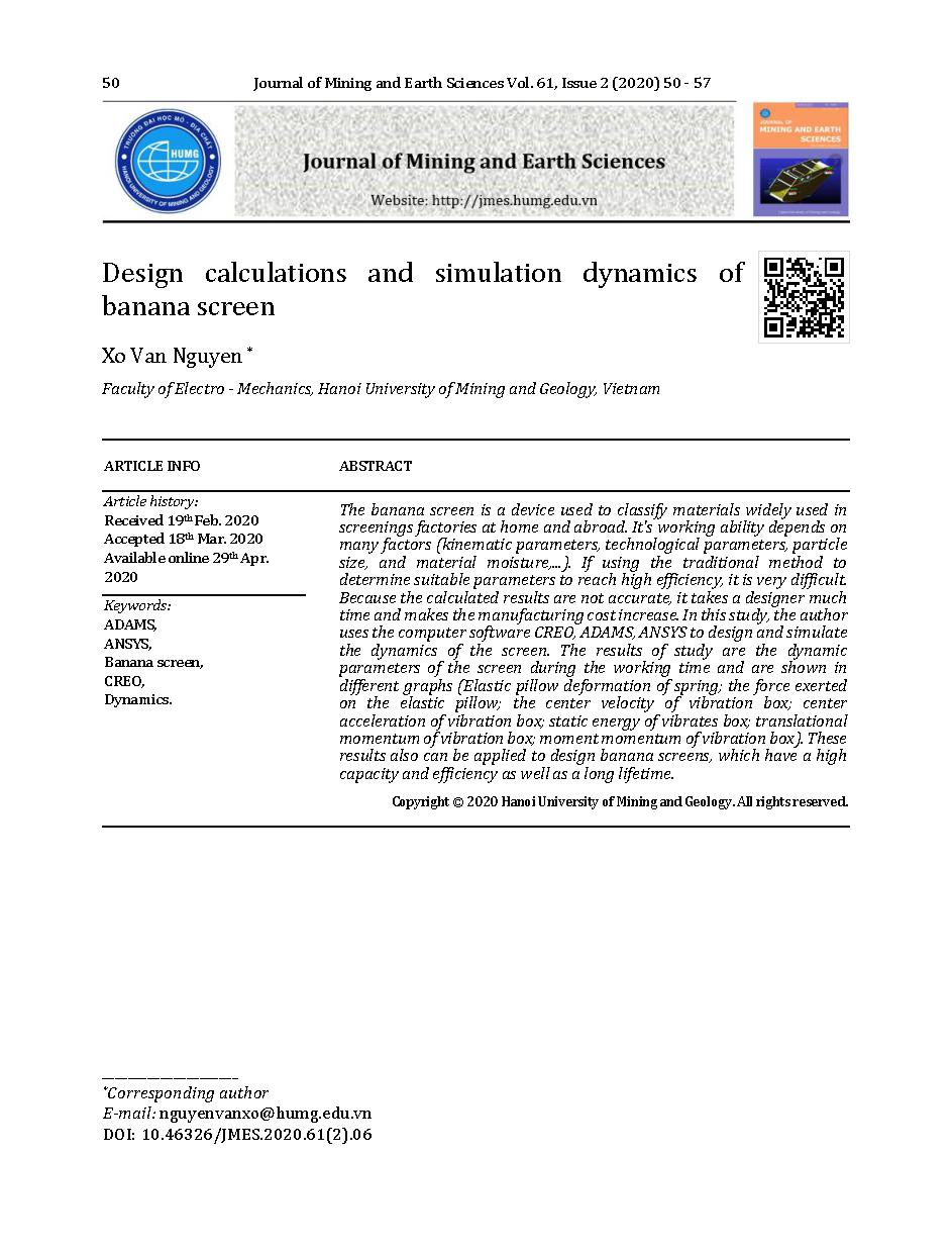 Tính toán thiết kế và mô phỏng động lực học của máy sàng rung cong = Design calculations and simulation dynamics of banana screen