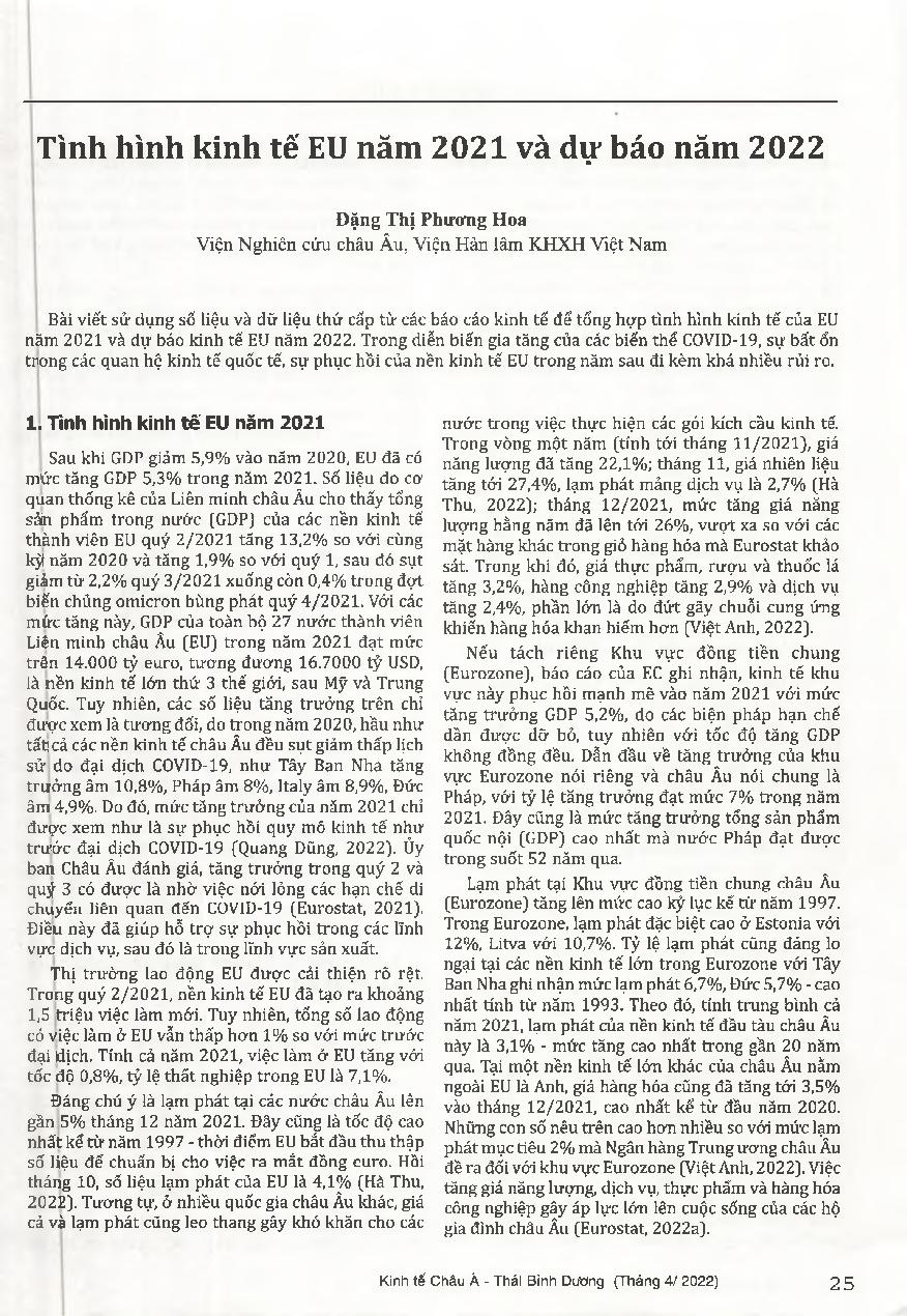 Tình hình kinh tế EU năm 2021 và dự báo năm 2022