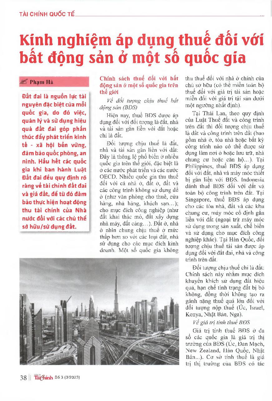 Kinh nghiệm áp dụng thuế đối với bất động sản ở một số quốc gia