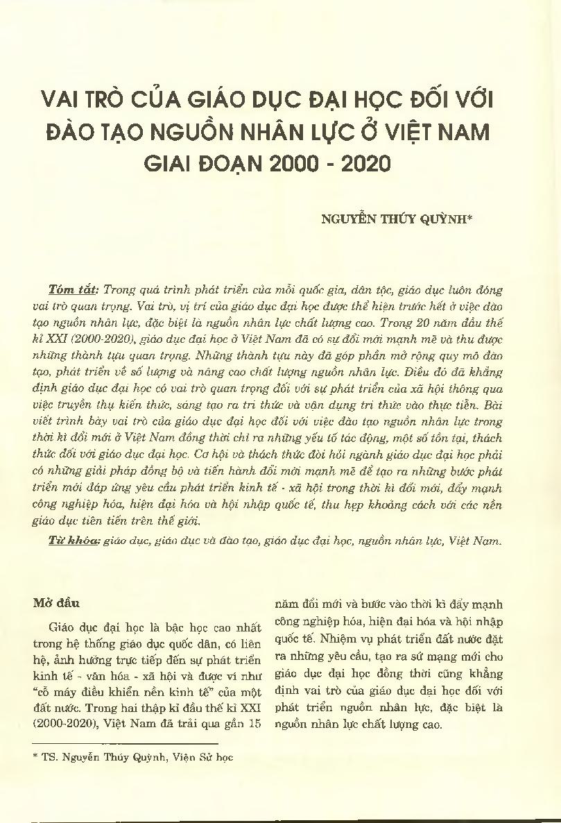 Vai trò của giáo dục đại học đối với đào tạo nguồn nhân lực ở Việt Nam giai đoạn 2000 - 2020 = The Role of Higher Education in Human Resource Training in Vietnam in the 2000 - 2020 Period