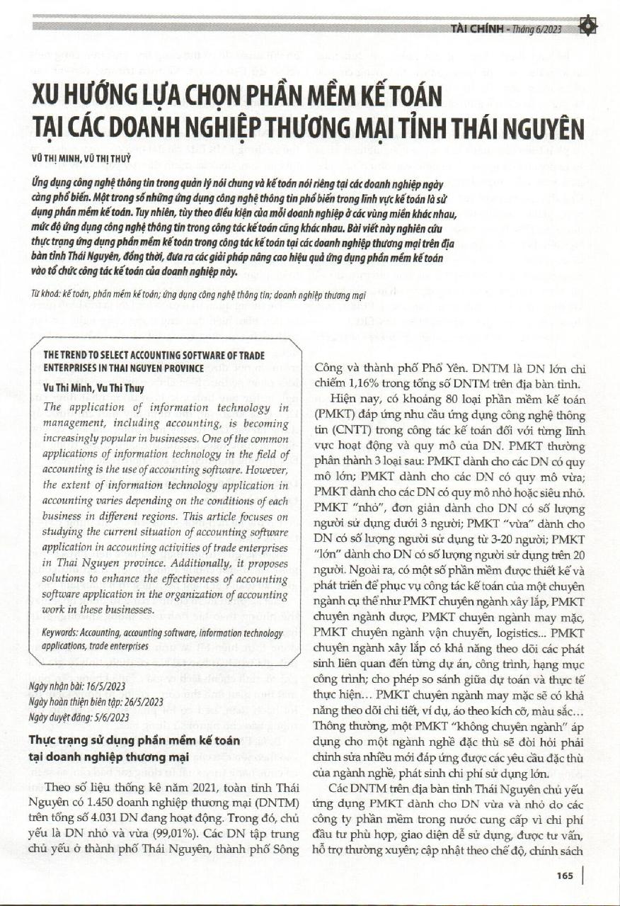 Xu hướng lựa chọn phần mềm kế toán tại các doanh nghiệp thương mại tỉnh Thái Nguyên