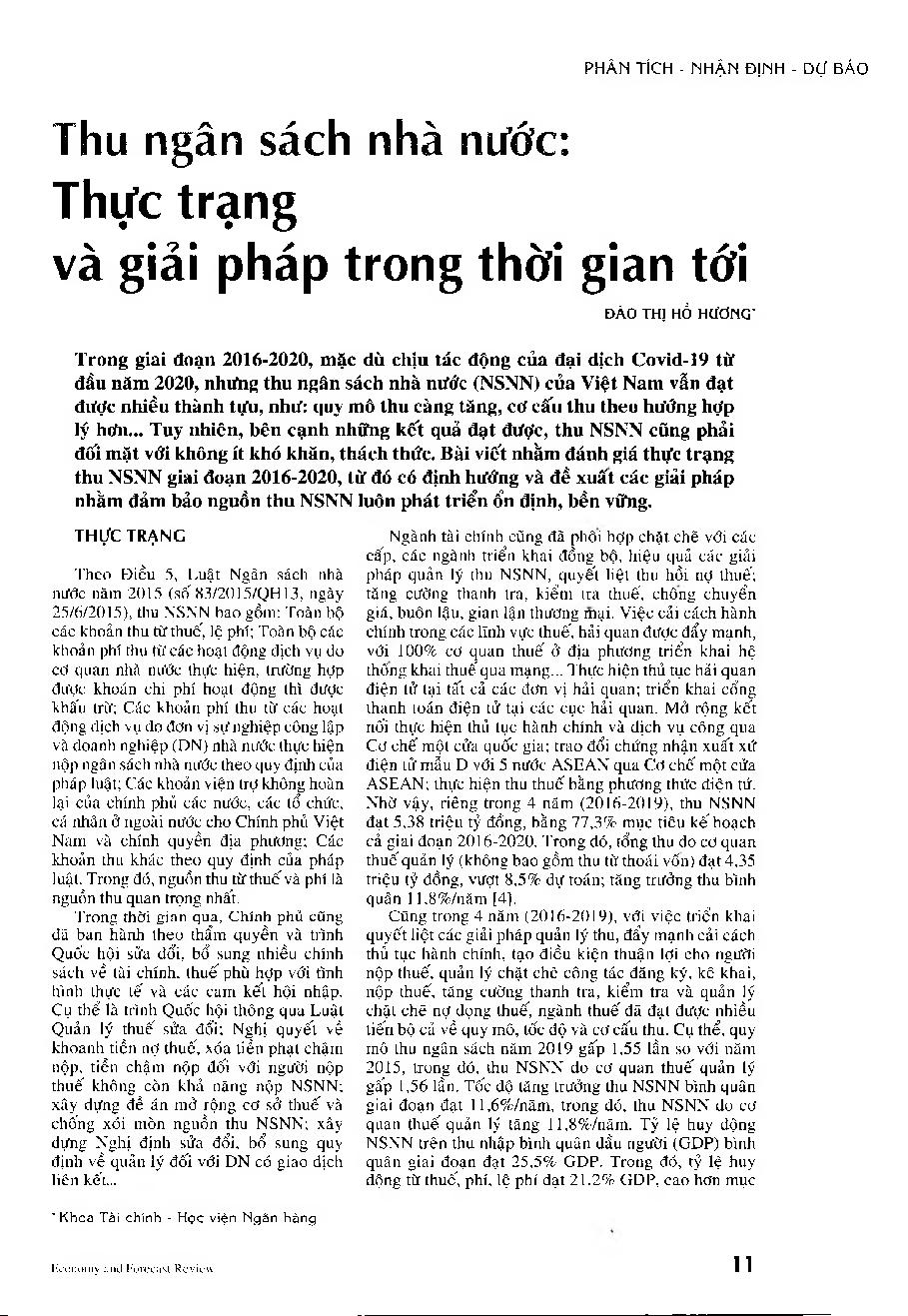Thu ngân sách nhà nước: Thực trạng và giải pháp trong thời gian tới