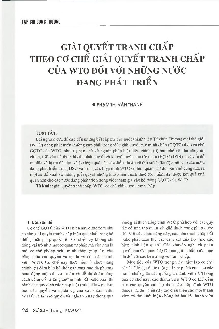Giải quyết tranh chấp theo cơ chế giải quyết tranh chấp của WTO đối với những nước đang phát triển = Settling disputes under the WTO&; 39;s dispute settlement mechanism for developing member countries