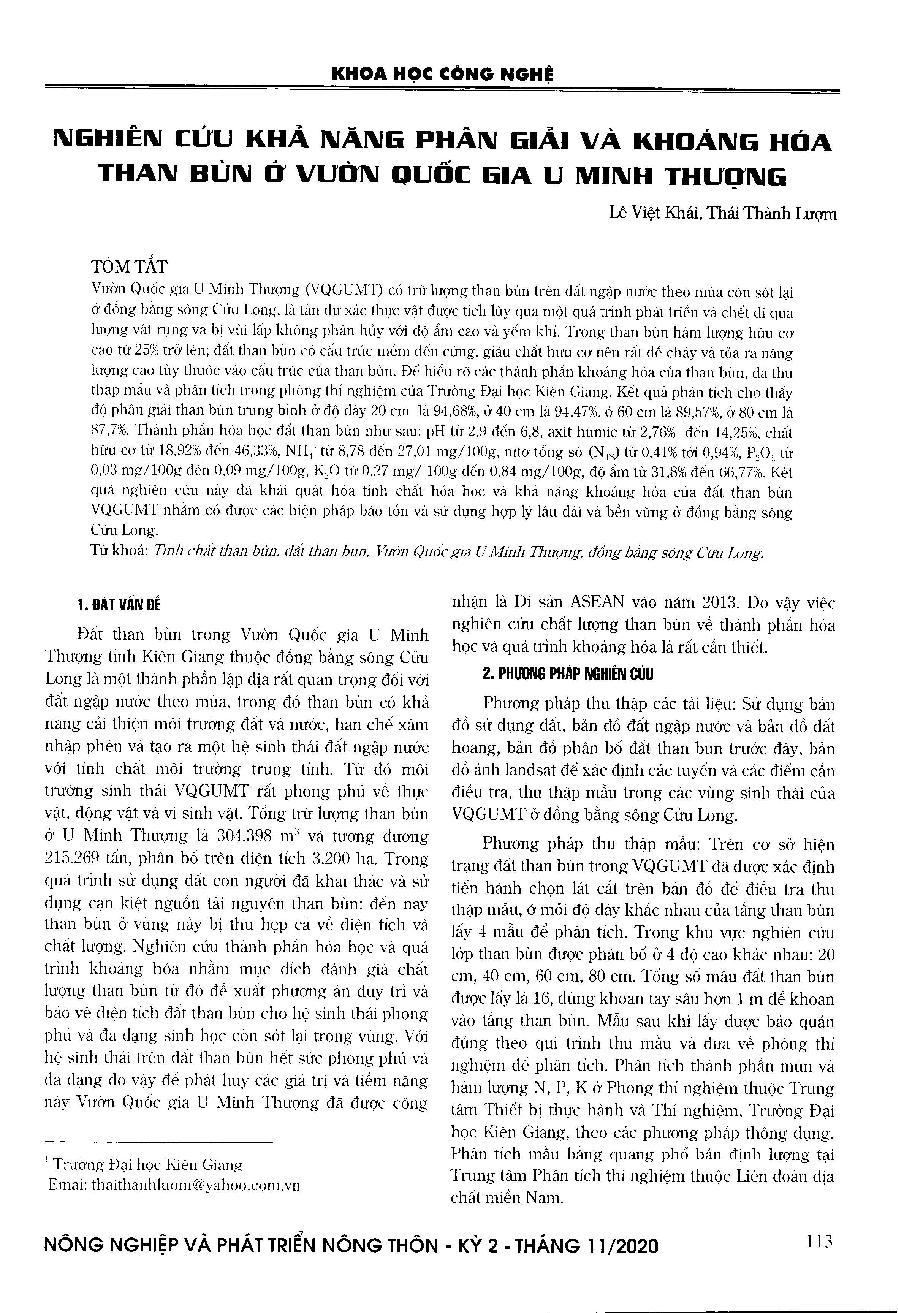 Nghiên cứu khả năng phân giải và khoáng hóa than bùn ở Vườn Quốc gia U Minh Thượng = Research on the resolution capability and mineral chemical in U Minh Thuong National Park