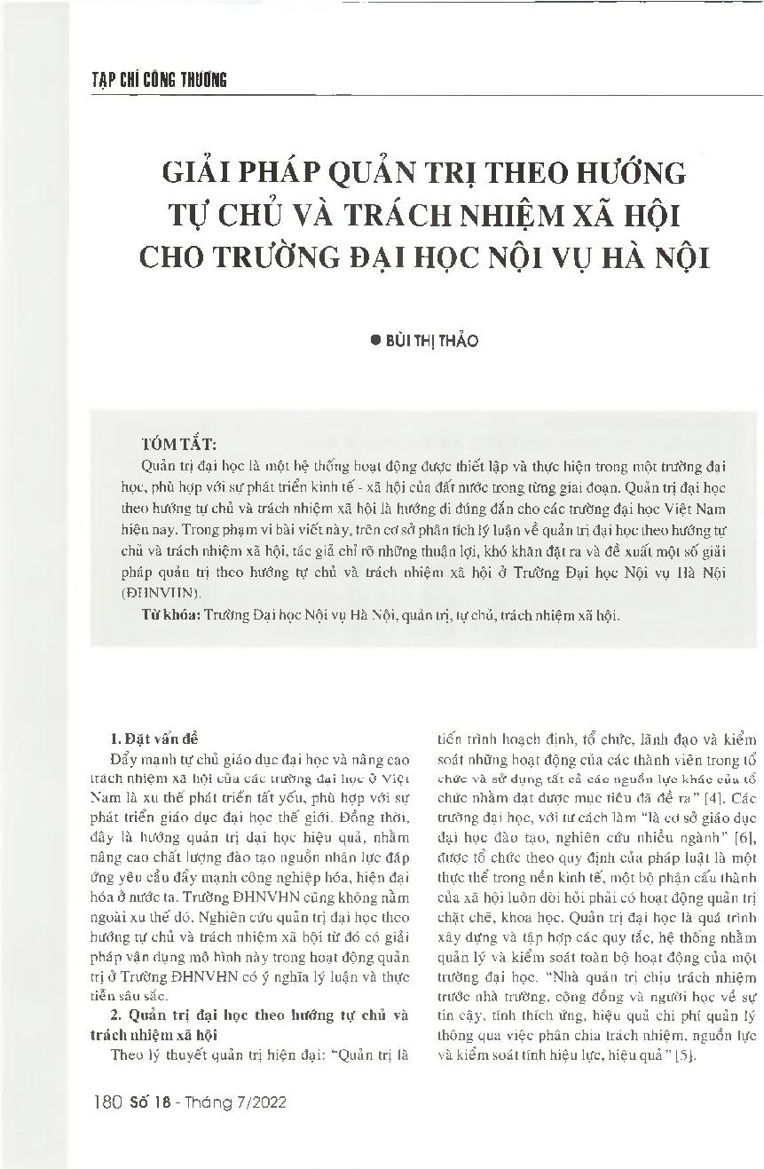 Giải pháp quản trị theo hướng tự chủ và trách nhiệm xã hội cho Trường Đại học Nội vụ Hà Nội = University governance solutions towards autonomy and social responsibility for Hanoi University of Home Affairs