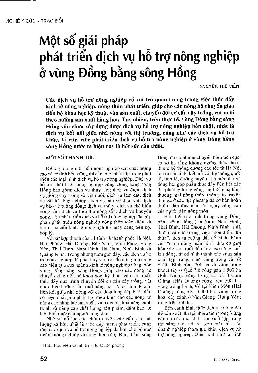 Một số giải pháp phát triển dịch vụ hỗ trợ nông nghiệp ở vùng Đồng bằng sông Hồng
