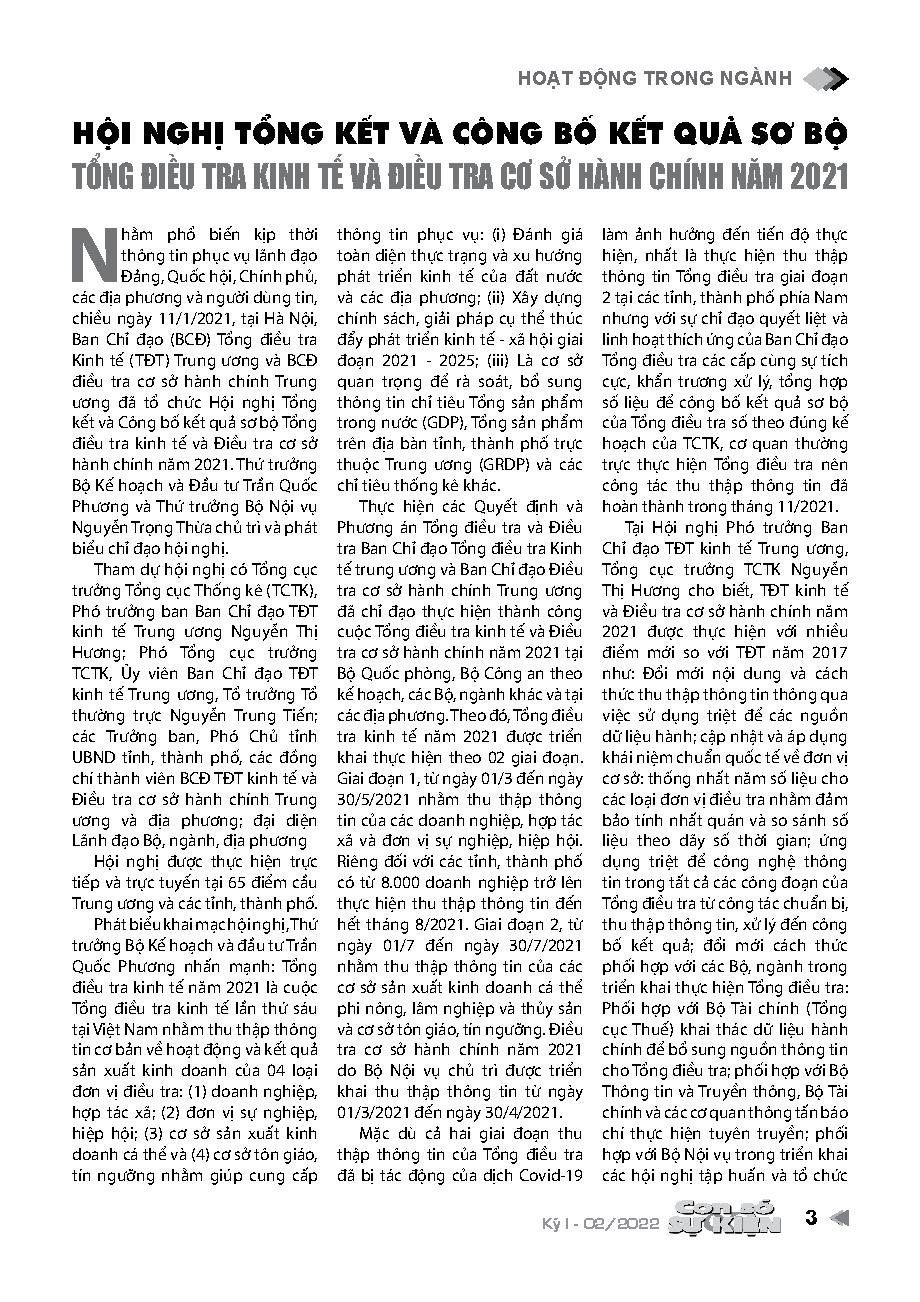 Hội nghị Tổng kết và Công bố kết quả sơ bộ Tổng điều tra kinh tế và Điều tra cơ sở hành chính năm 2021