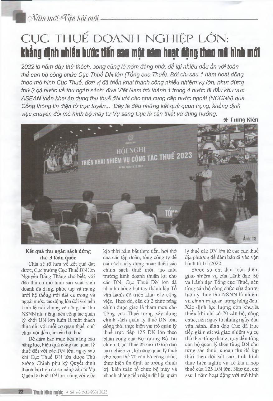 Cục Thuế doanh nghiệp lớn: khẳng định nhiều bước tiến sau một năm hoạt động theo mô hình mới