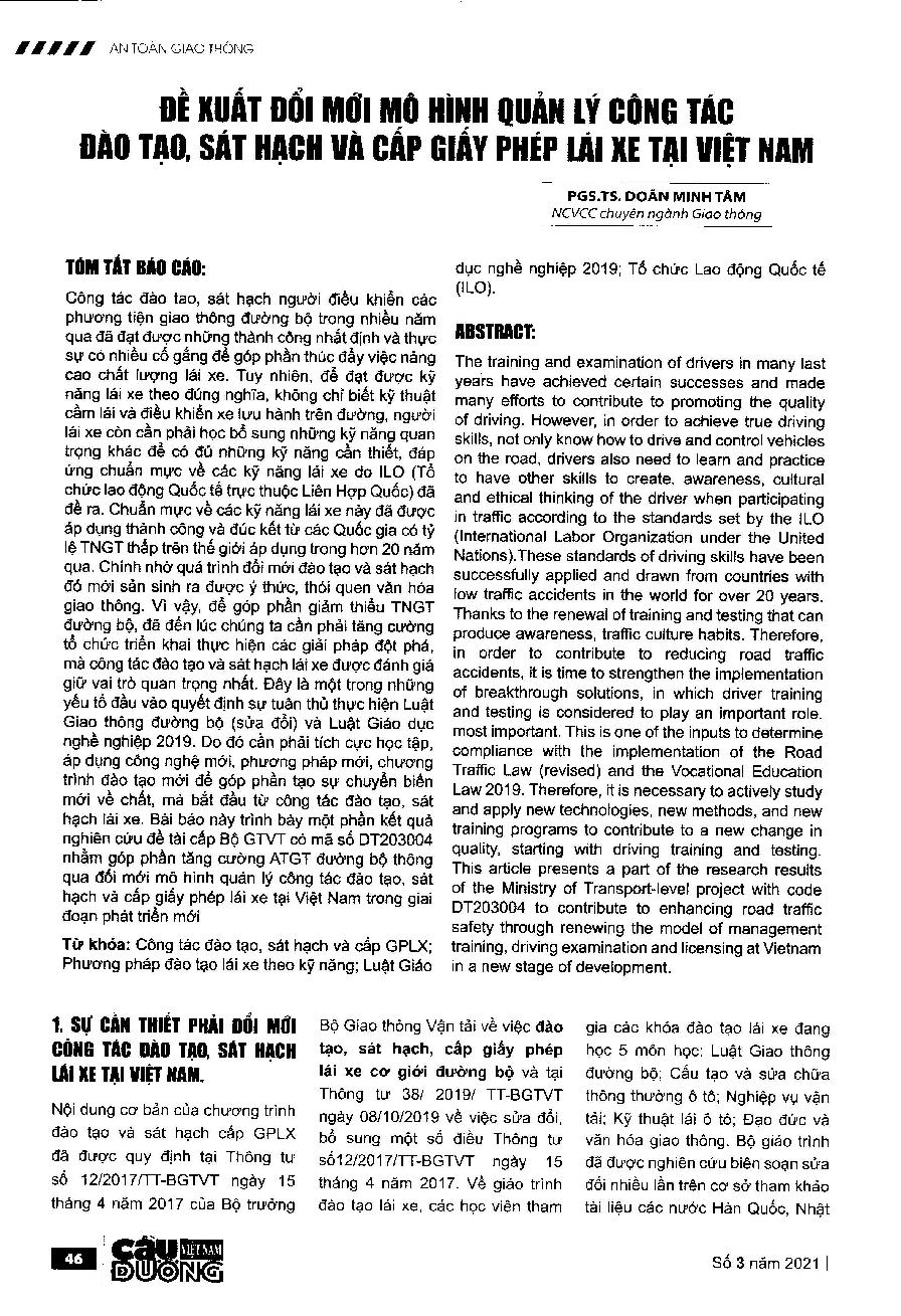 Đề xuất đổi mới mô hình quản lý công tác đào tạo, sát hạch và nâng cấp giấy phép lái xe tại Việt Nam