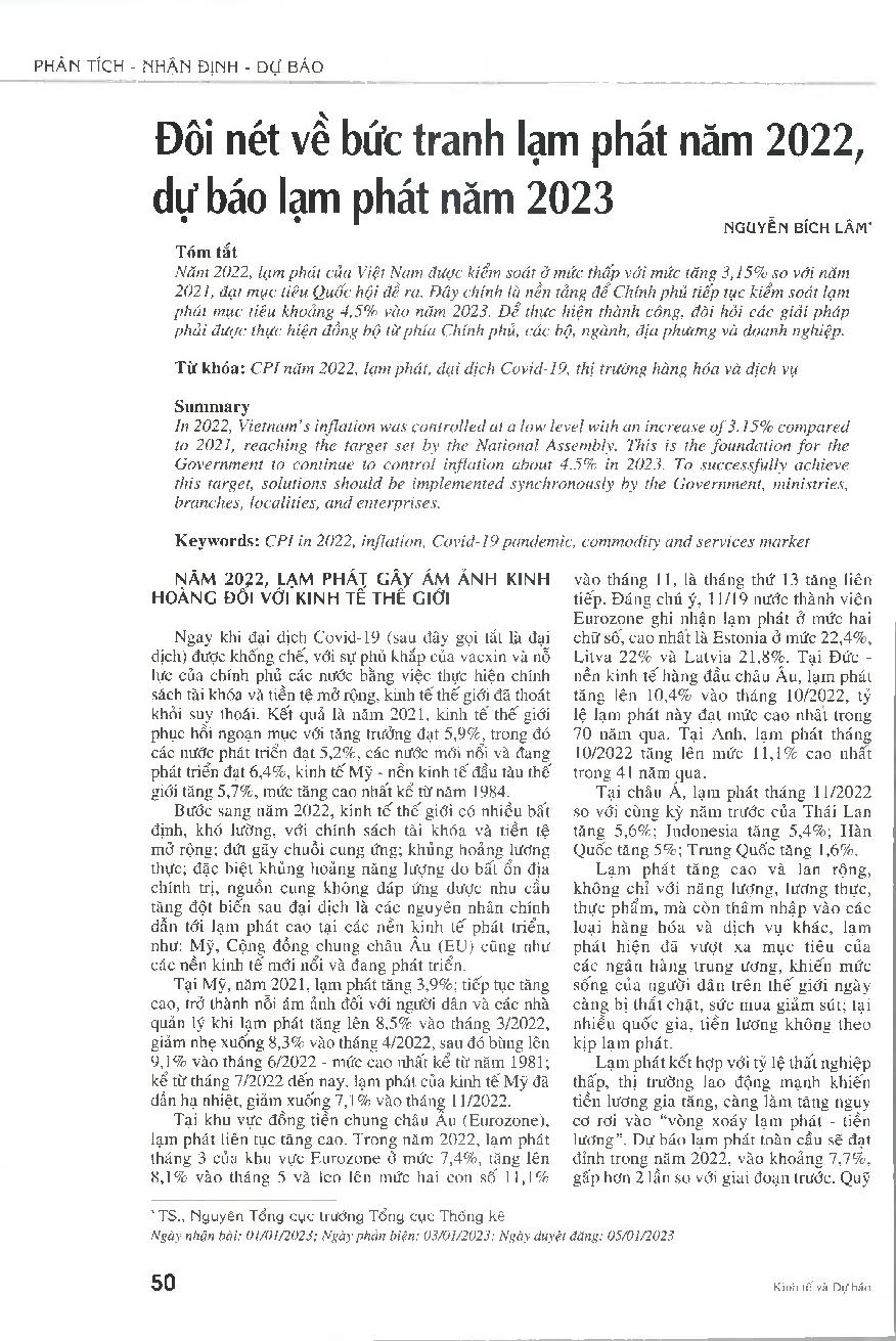 Đôi nét về bức tranh lạm phát năm 2022, dự báo lạm phát năm 2023 = A brief overview of the inflation picture in 2022, and inflation forecast in 2023