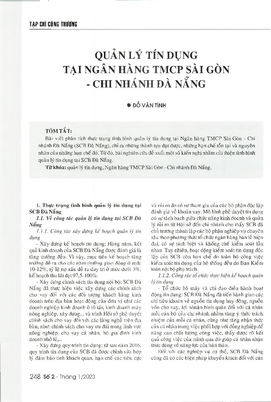 Quản lý tín dụng tại Ngân hàng TMCP Sài Gòn - Chi nhánh Đà Nẵng = The credit management of Saigon Commercial Joint stock Bank - Da Nang Branch