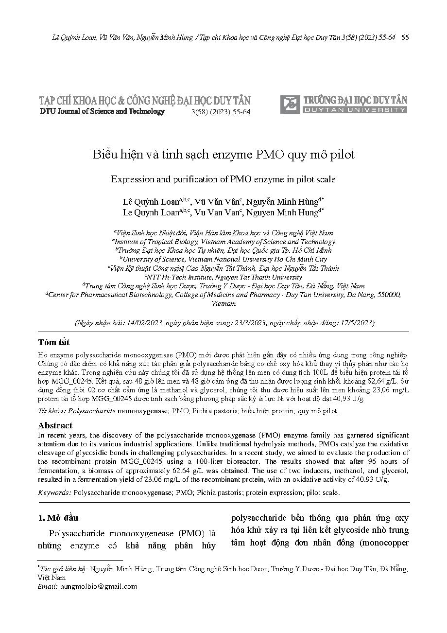 Biểu hiện và tinh sạch enzyme PMO quy mô pilot