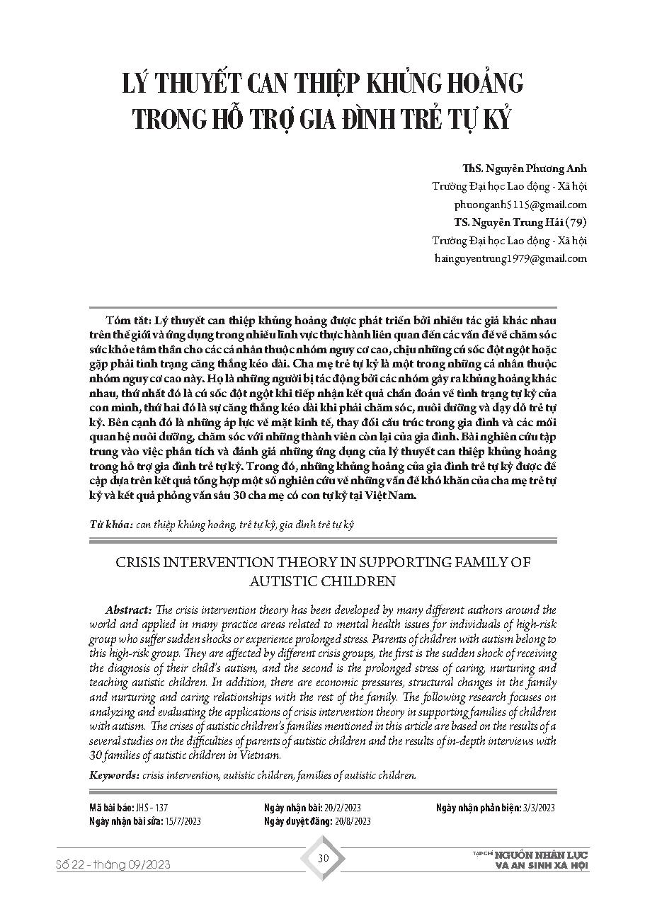 Lý thuyết mô hình can thiệp khủng hoảng trong hỗ trợ gia đình trẻ tự kỷ = Crisis intervention theory in supporting family of autistic children
