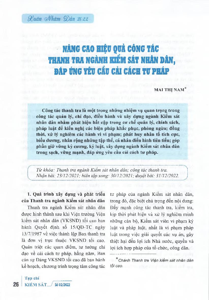 Nâng cao hiệu quả công tác thanh tra trong ngành Kiểm sát nhân dân, đáp ứng yêu cầu cải cách tư pháp
