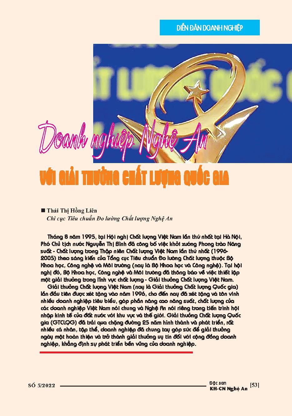 Doanh nghiệp Nghệ An với giải thưởng chất lượng quốc gia