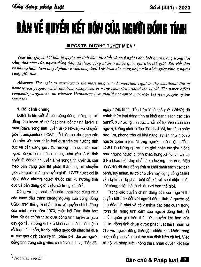 Bàn về quyền kết hôn của người đồng tính = Discuss the right of homosexuals to marry