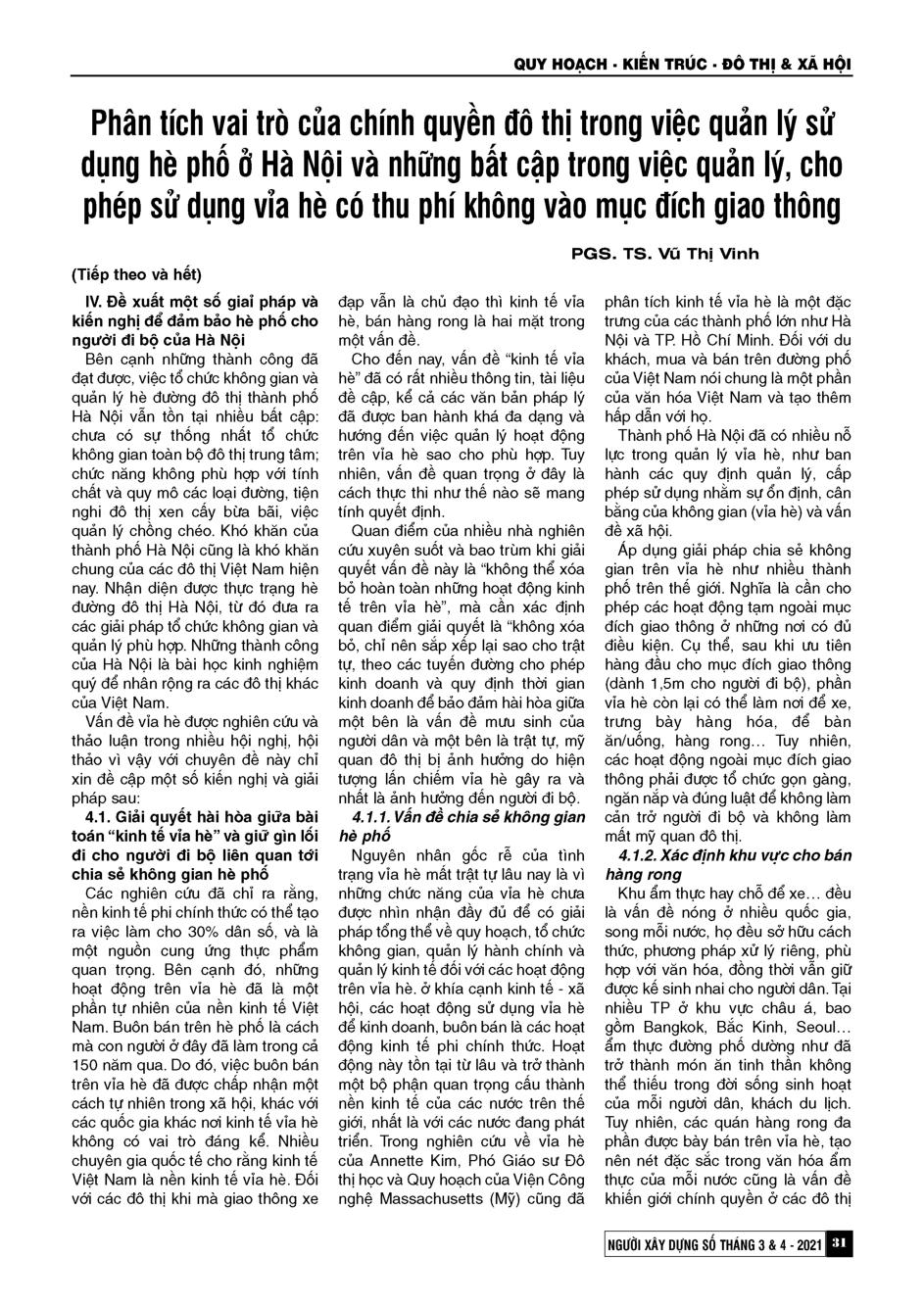 Phân tích vai trò của chính quyền đô thị trong việc quản lý sử dụng hè phố ở Hà Nội và những bất cập trong việc quản lý, cho phép sử dụng vỉa hè có thu phí không vào mục đích giao thông