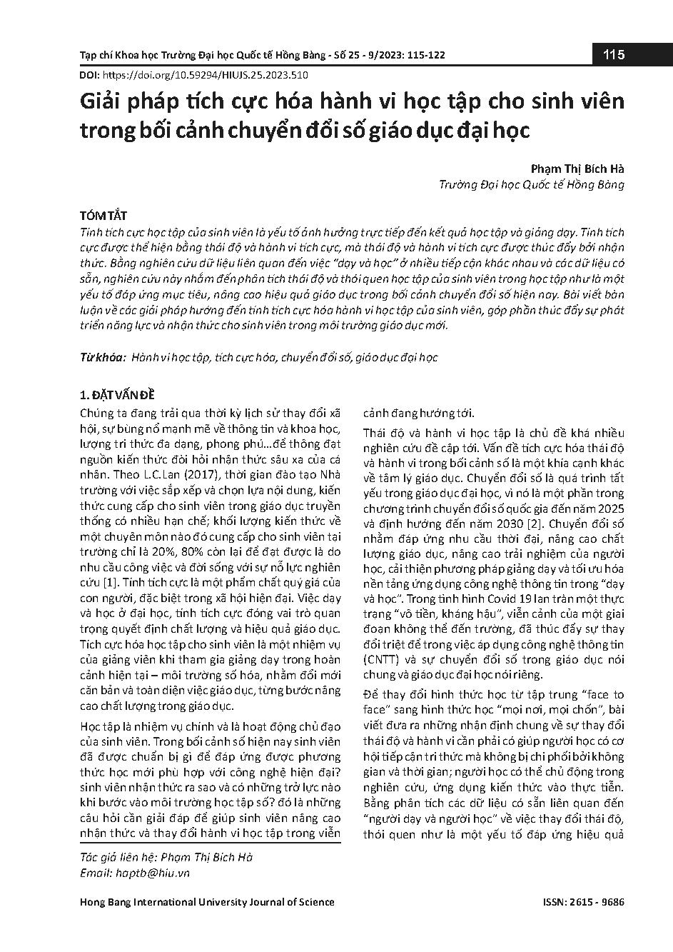 Giải pháp tích cực hóa hành vi học tập cho sinh viên trong bối cảnh chuyển đổi số giáo dục đại học