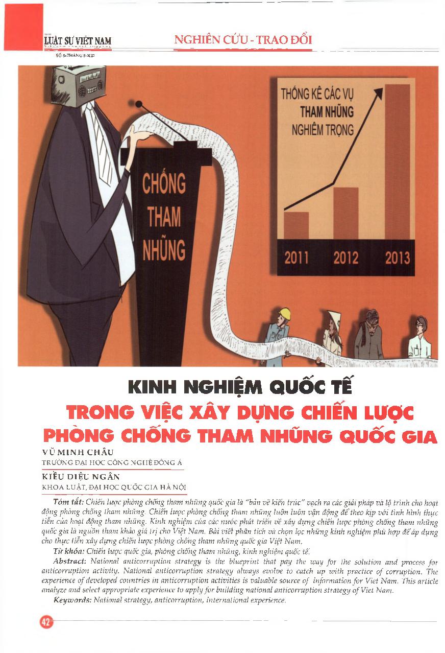 Kinh nghiệm quốc tế trong việc xây dựng chiến lược phòng chống tham nhũng quốc gia = International experience in building national anti-cormption strategy