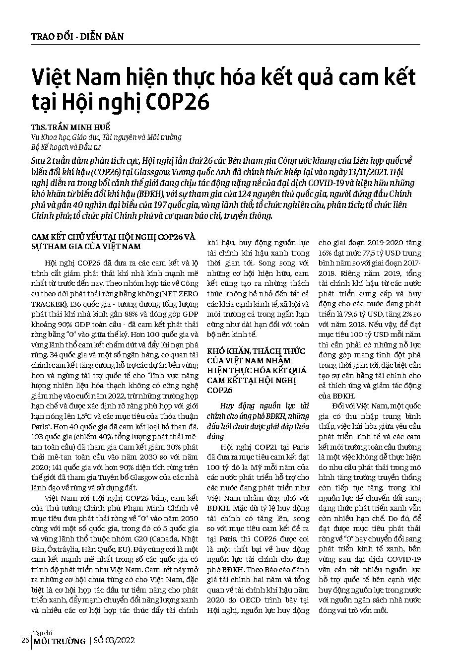 Việt Nam hiện thực hóa kết quả cam kết tại Hội nghị COP26