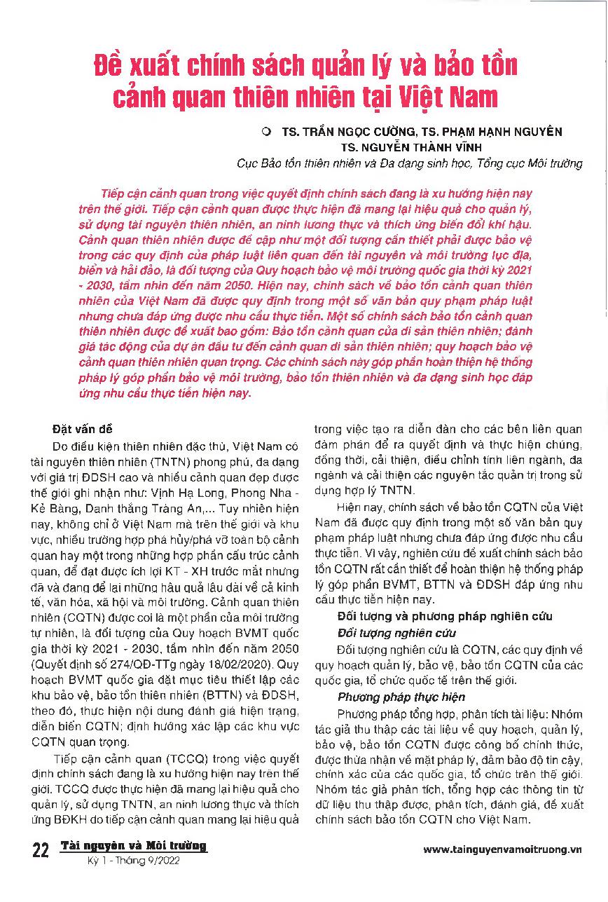 Đề xuất chính sách quản lý và bảo tồn cảnh quan thiên nhiên tại Việt Nam
