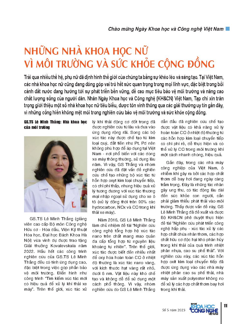 Những nhà khoa học nữ vì môi trường và sức khỏe cộng đồng