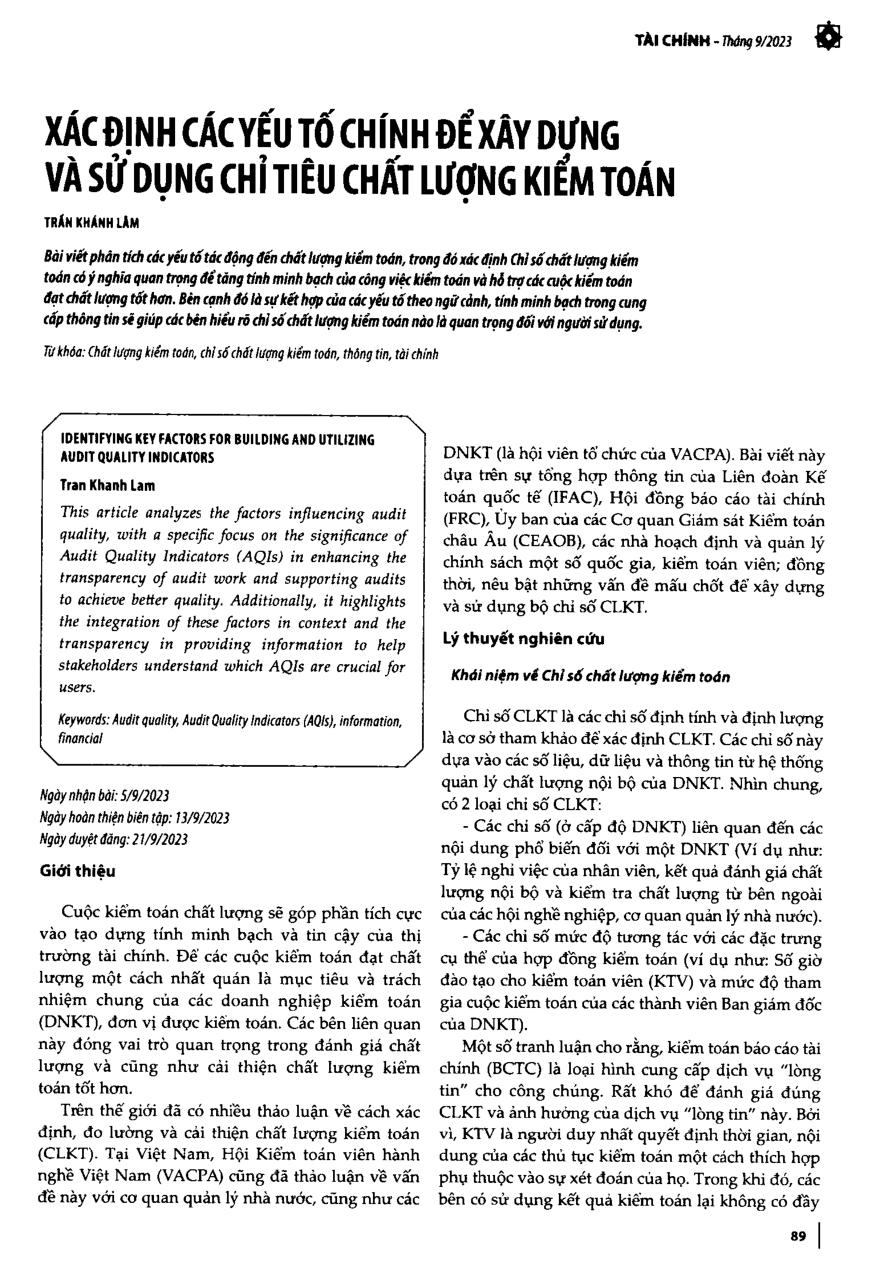 Xác định các yếu tố chính để xây dựng và sử dụng chỉ tiêu chất lượng kiểm toán