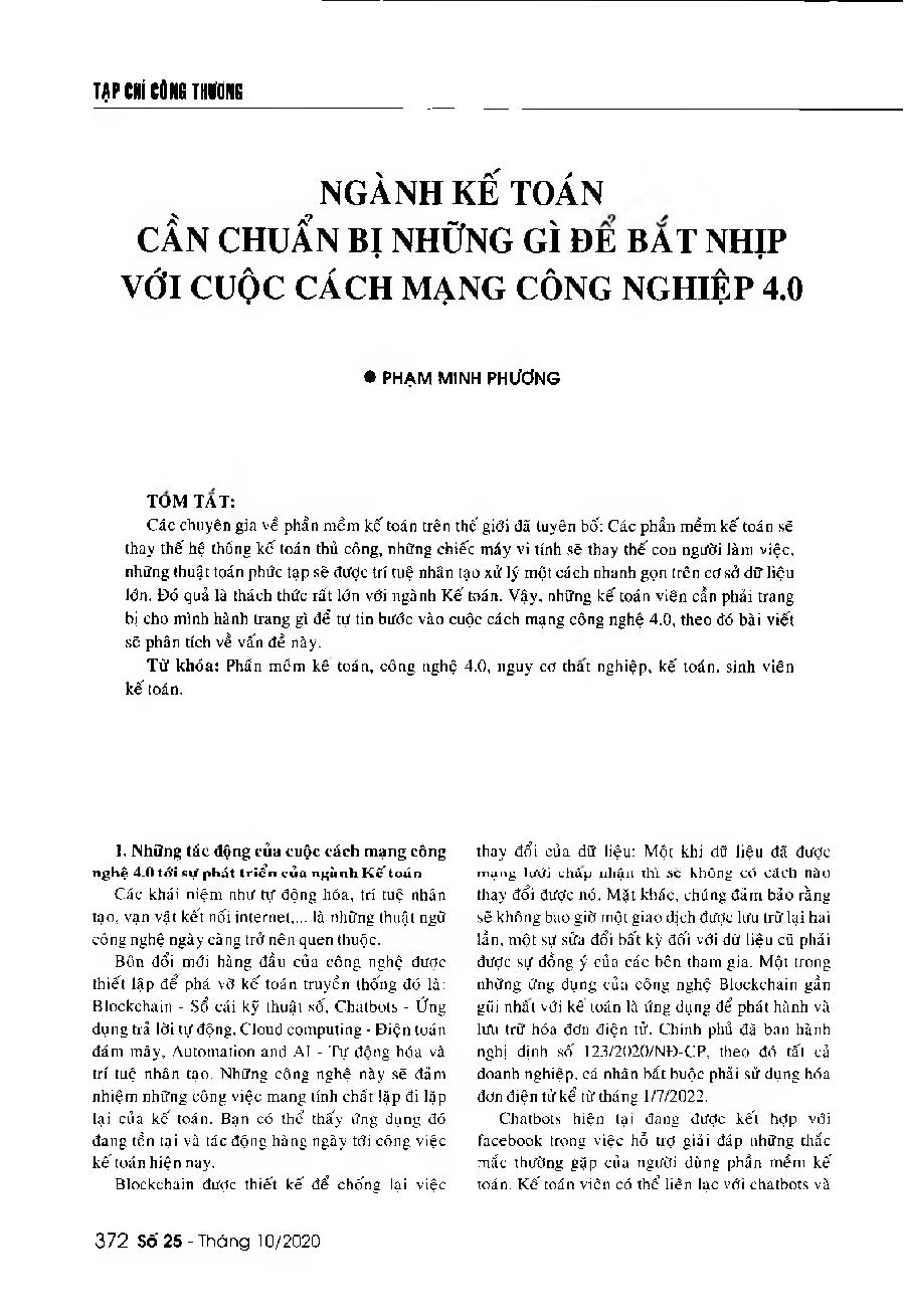 Ngành kế toán cần chuẩn bị những gì đế bắt nhịp với cuộc cách mạng công nghiệp 4.0 = Necessary knowledge and skill sets for students to catch up with Industry 4.0