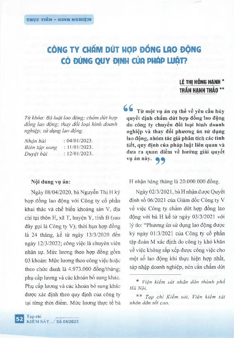 Công ty chấm dứt hợp đồng lao động có đúng quy định của pháp luật? = Is the way that a company terminates labor contract in accordance with law?