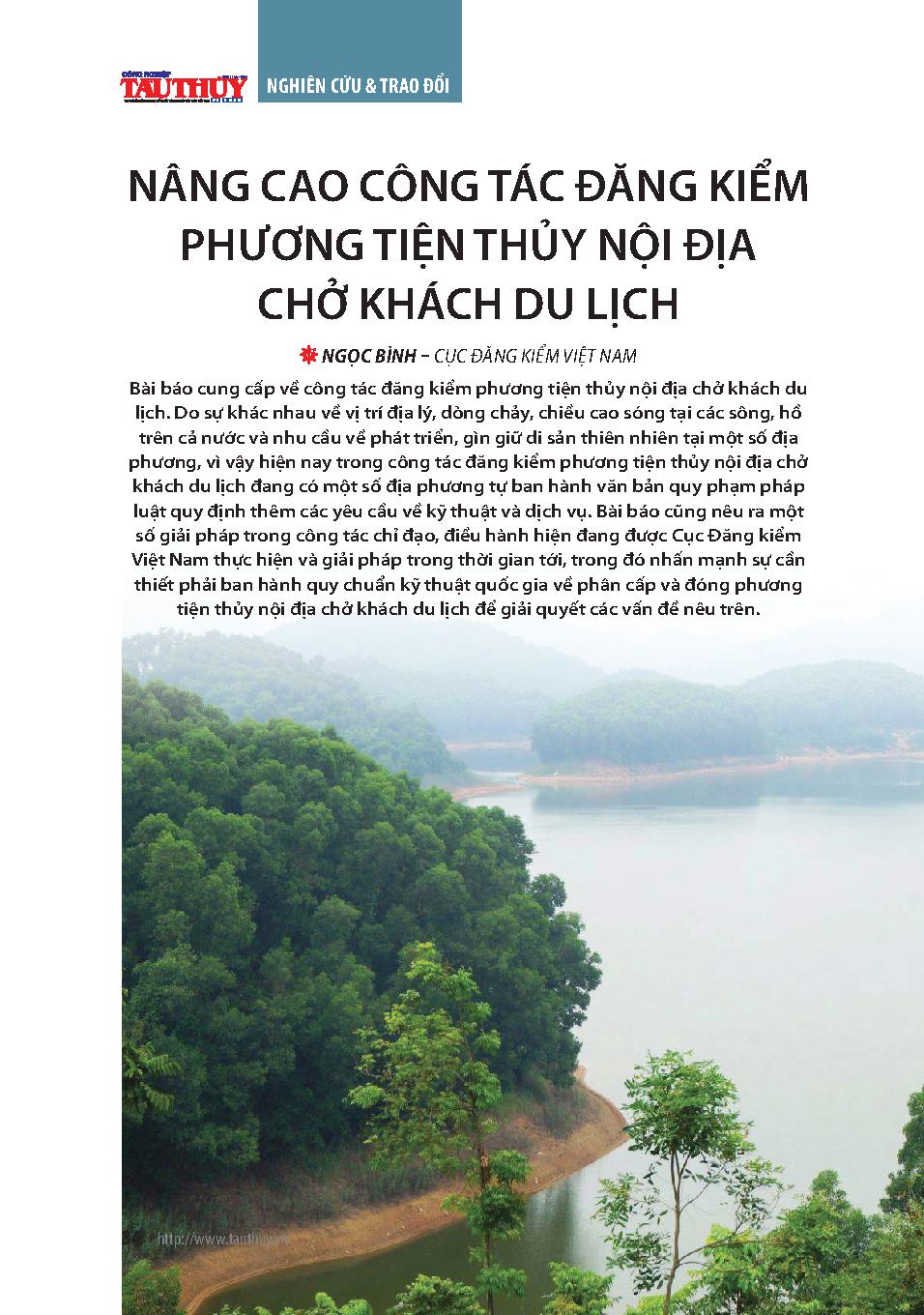 Nâng cao công tác đăng kiểm phương tiện thủy nội địa chở khách du lịch = Improve the registration of inland watercraft carrying tourists
