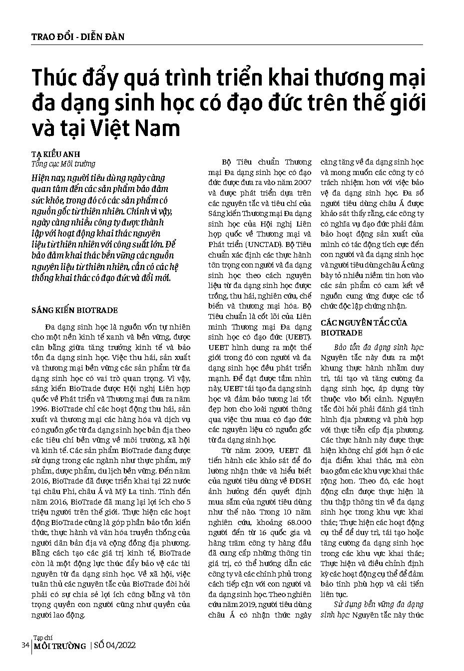 Thúc đẩy quá trình triển khai thương mại đa dạng sinh học có đạo đức trên thế giới và tại Việt Nam