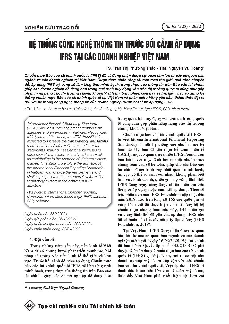 Hệ thống công nghệ thông tin trước bối cảnh áp dụng IFRS tại các doanh nghiệp Việt Nam = Information technology system in the context of applying IFRS in Vietnamese enterprises