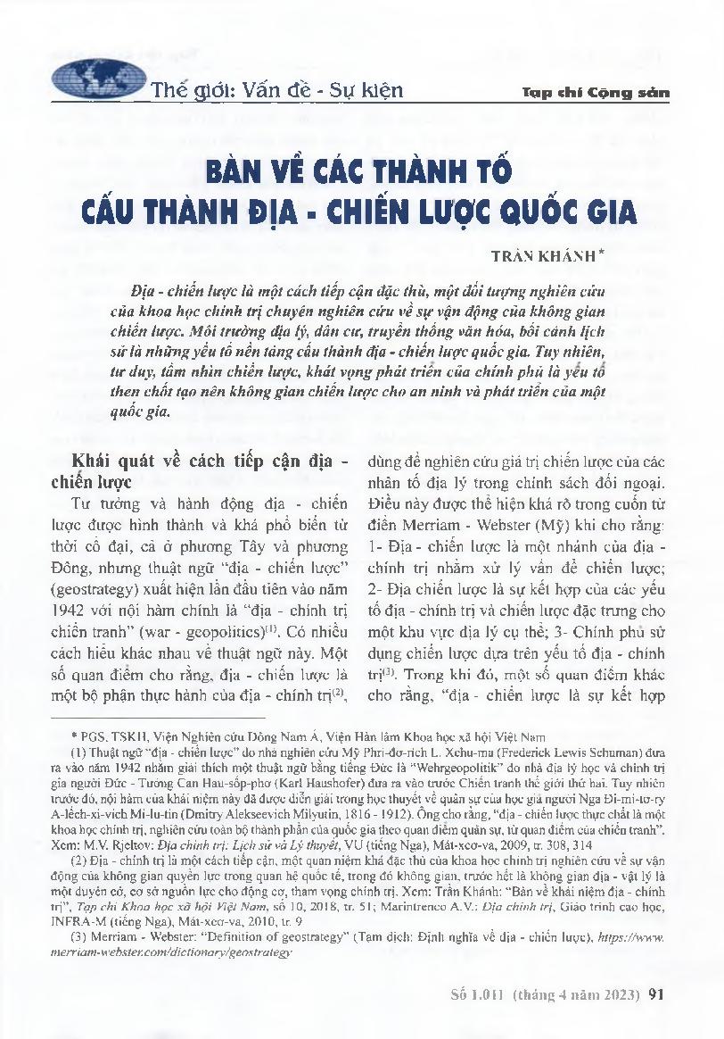Bàn về các thành tố cấu thành địa - chiến lược quốc gia