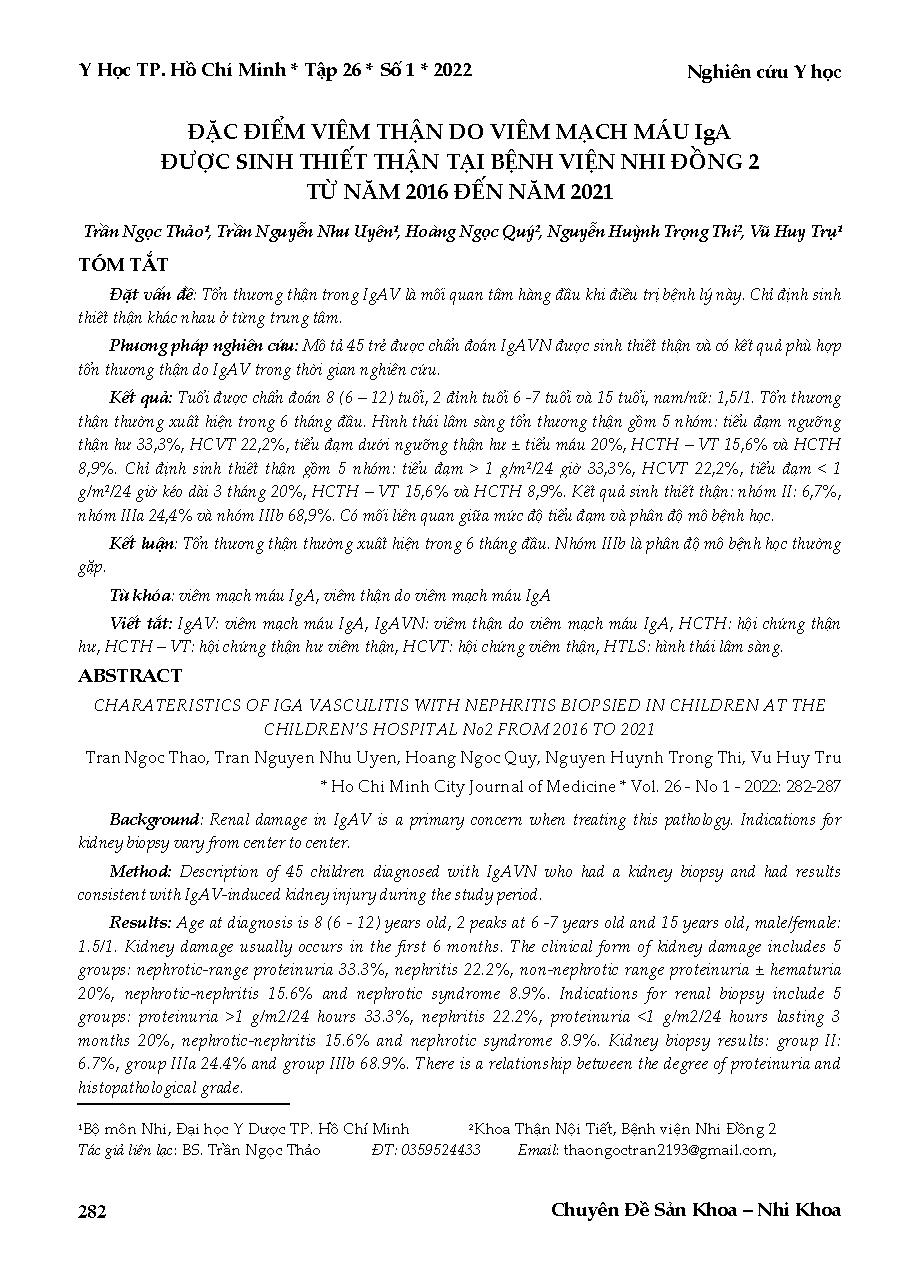 Đặc điểm viêm thận do viêm mạch máu IGA được sinh thiết thận tại Bệnh viện Nhi đồng 2 từ năm 2016 đến năm 2021