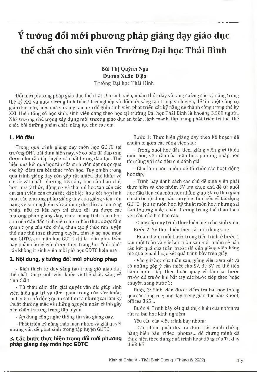 Ý tưởng đổi mới phương pháp giảng dạy giáo dục thể chất cho sinh viên Trường Đại học Thái Bình