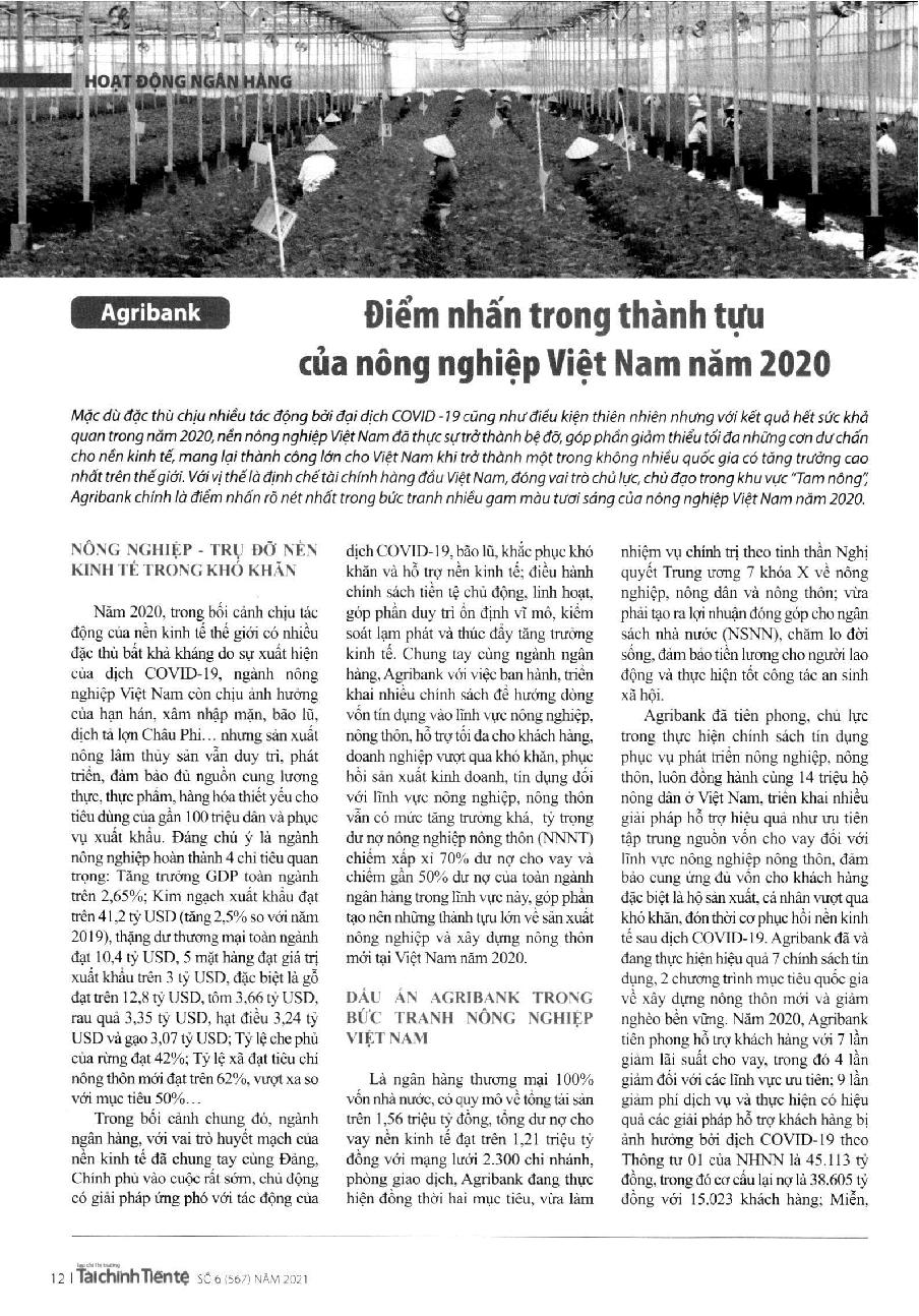 Agribank: Điểm nhấn trong thành tựu của nông nghiệp Việt Nam năm 2020