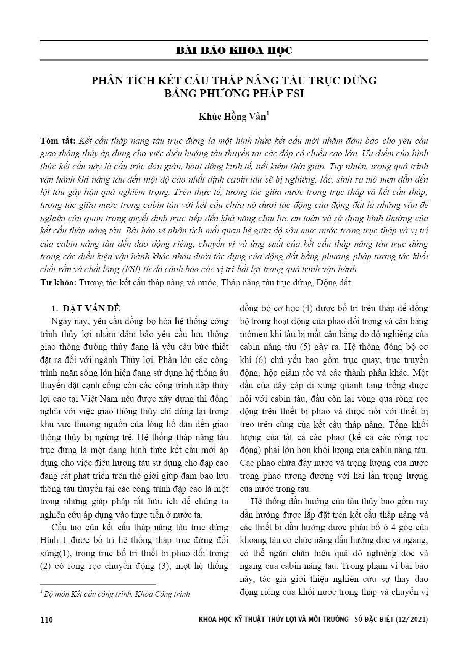 Phân tích kết cấu tháp nâng tàu trục đứng bằng phương pháp FSI = Analysis vertical lifting tower structure base on fsi method