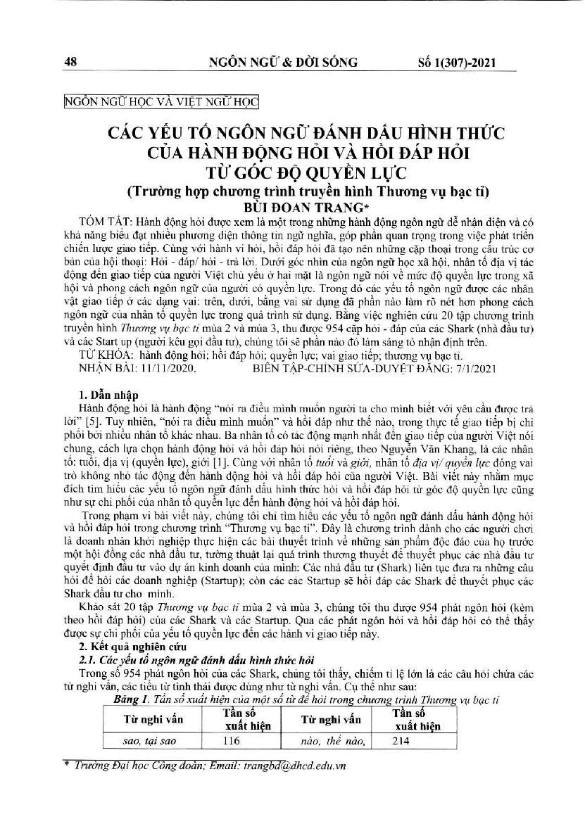 Các yếu tố ngôn ngữ đánh dấu hình thức của hành động hỏi và hồi đáp hỏi từ góc độ quyền lực