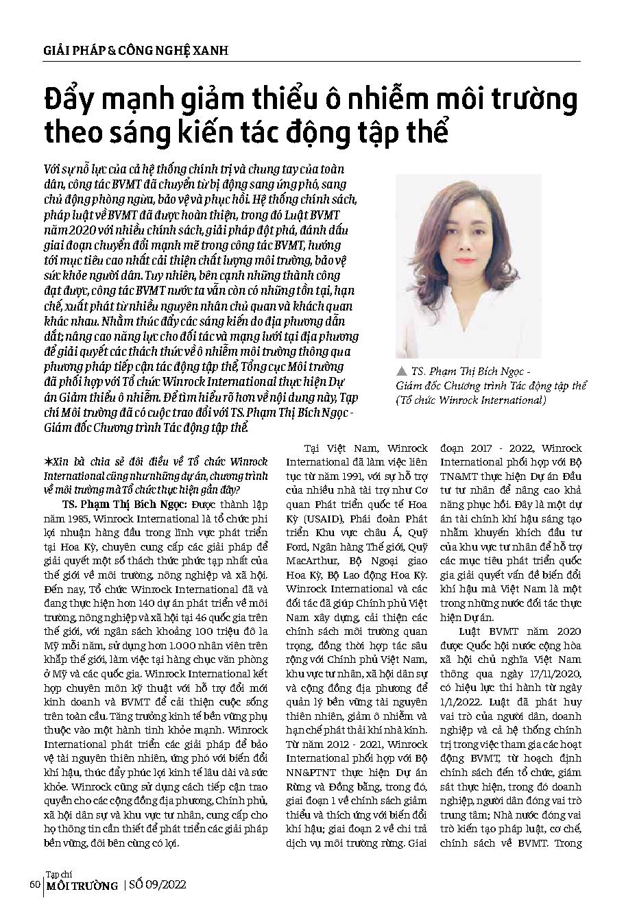 Đẩy mạnh giảm thiểu ô nhiễm môi trường theo sáng kiến tác động tập thể