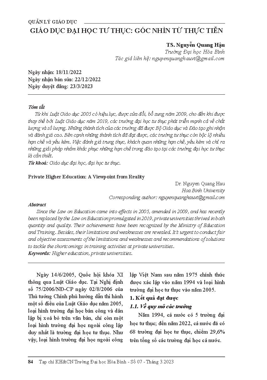 Giáo dục đại học tư thục - Góc nhìn từ thực tiễn = Private higher education: A viewpoint from reality