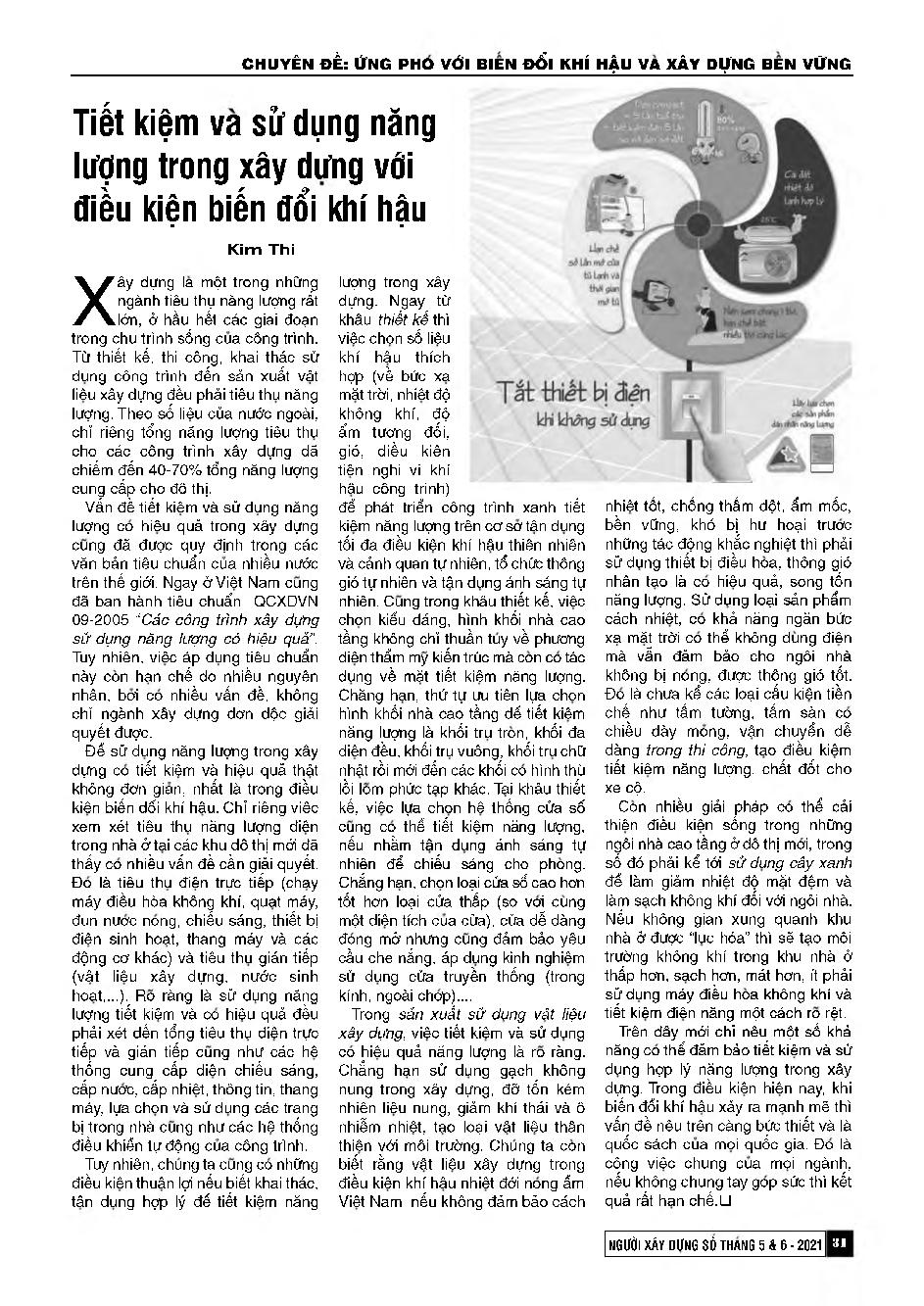 Tiết kiệm và sử dụng năng lượng trong xây dựng với điều kiên biến đổi khí hậu