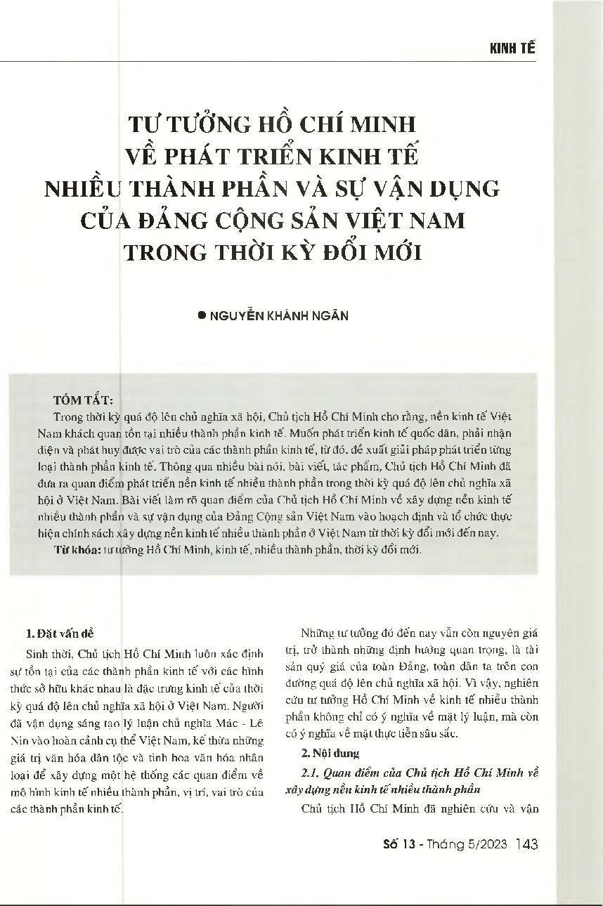 Tư tưởng Hồ Chí Minh về phát triển kinh tế nhiều thành phần và sự vận dụng của Đảng Cộng sản Việt Nam trong thời kỳ đổi mới