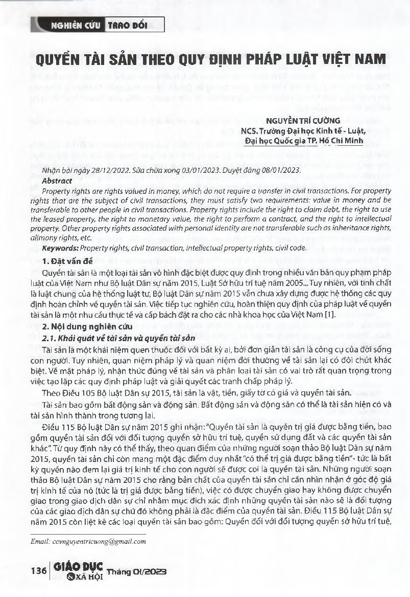 Quyền tài sản theo quy định pháp luật Việt Nam = Property rights in accordance with Vietnamese law