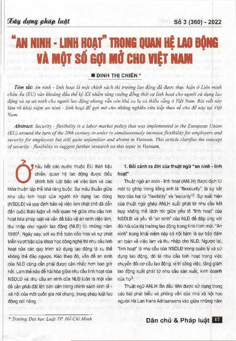 An ninh - linh hoạt trong quan hệ lao động và một số gợi mở cho Việt Nam