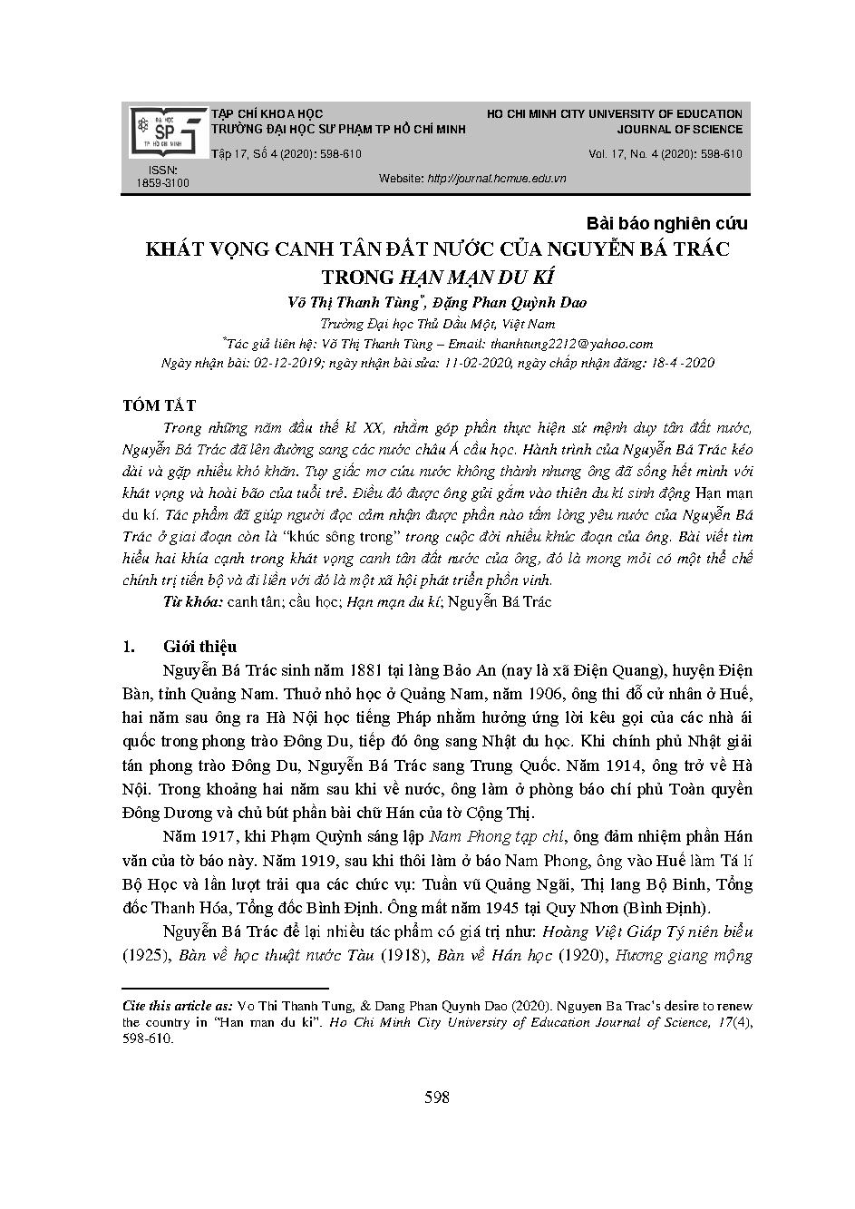 Tác giả: Võ Thị Thanh Tùng; Đặng Phan Quỳnh Dao;