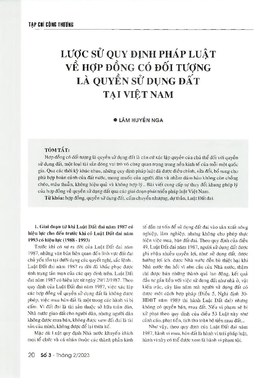 Lược sử quy định pháp luật về hợp đồng có đối tượng là quyền sử dụng đất tại Việt Nam = An overview of the changes in Vietnam's legal framework for the contract on land use rights