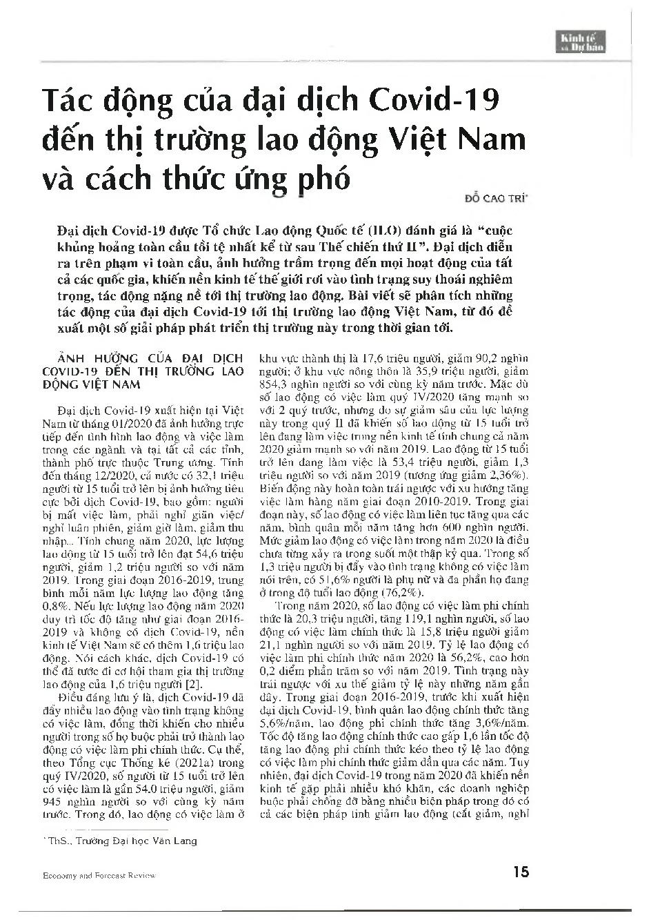 Tác động của đại dịch Covid-19 đến thị trường lao động Việt Nam và cách thức ứng phó