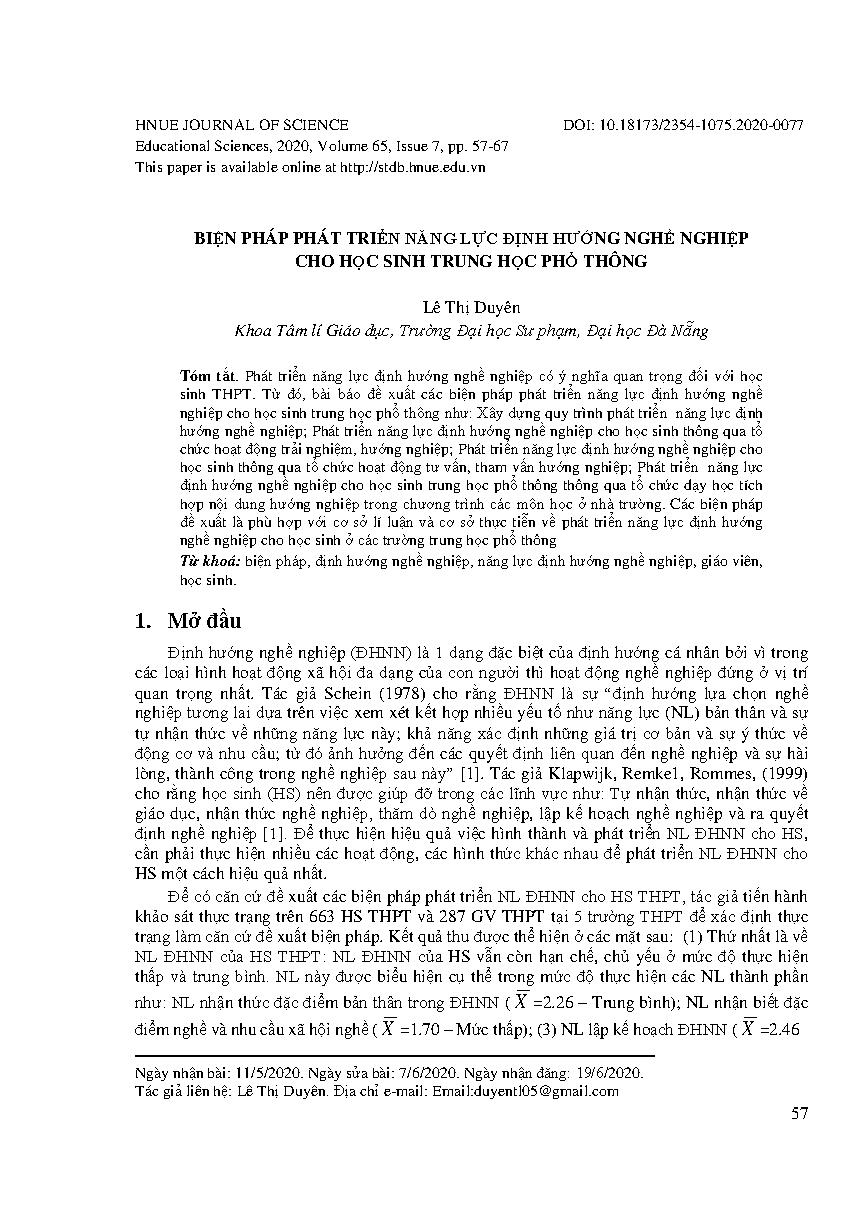 Biện pháp phát triển năng lực định hướng nghề nghiệp cho học sinh trung học phổ thông = Measures for developing career orientation capacity for high school students