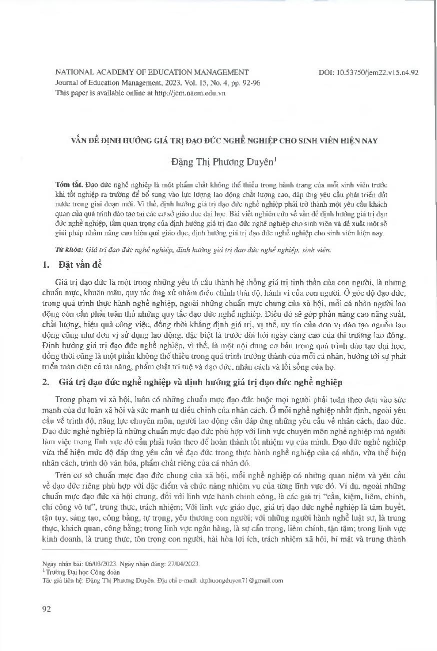Vấn đề định hướng giá trị đạo đức nghề nghiệp cho sinh viên hiện nay = Literature review on assessing students' learning outcomes using a competency-based approach at universities and the People's Police Academy