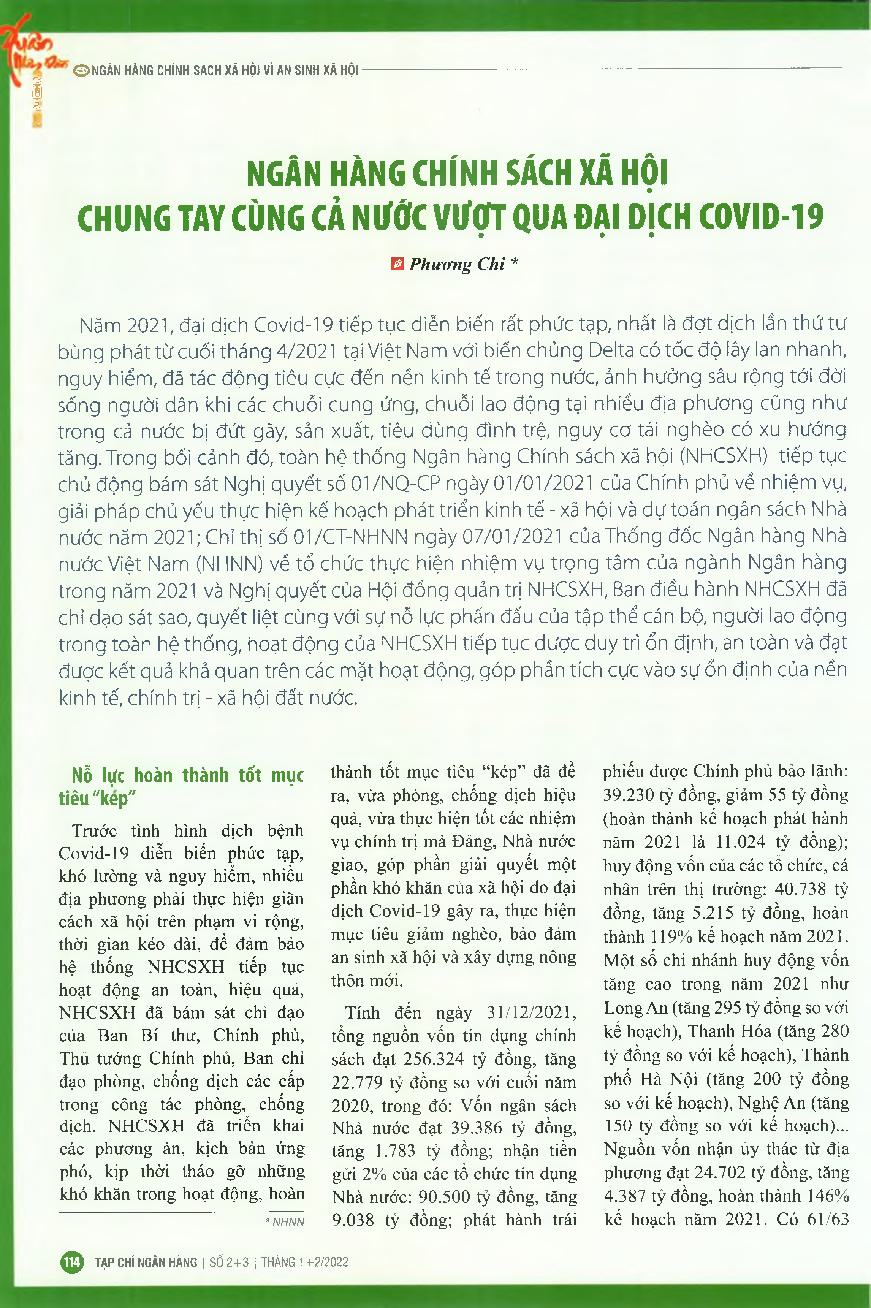 Ngân hàng Chính sách xã hội chung tay cùng cả nước vượt qua đại dịch Covid-19 = Bank for Social Policies joins hands with the whole country to overcome the Covid-19 pandemic